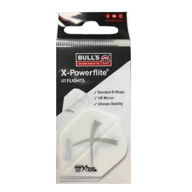 Les Bull's X Powerflite Blanche Standard combinent légèreté et stabilité pour faciliter un contrôle précis des trajectoires. Leur couleur blanche permet de repérer facilement vos fléchettes tout en s'accordant harmonieusement avec l'ensemble de votre équipement.
