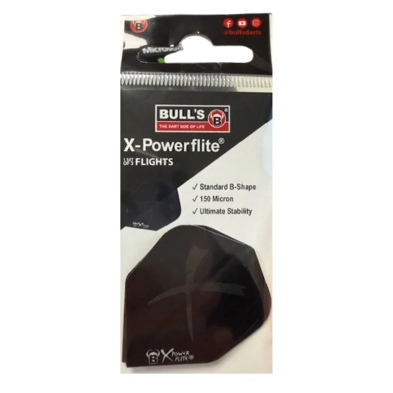 Les Bull's X Powerflite Noire Standard équilibrent légèreté et stabilité, facilitant le contrôle des trajectoires pour des lancers plus nets. Leur finition noire élégante permet de repérer facilement vos fléchettes tout en s'accordant avec tout type d'équipement.