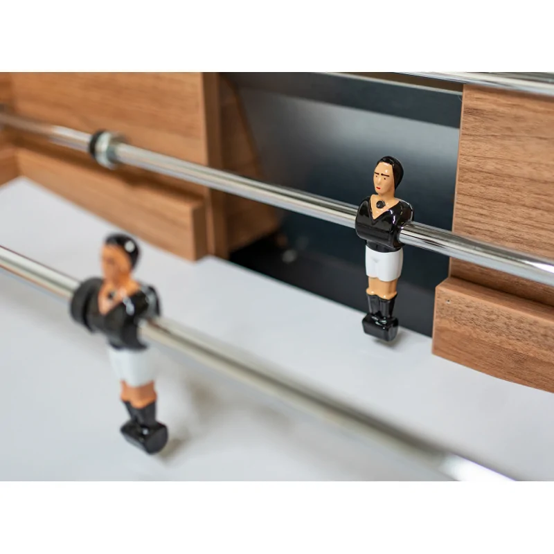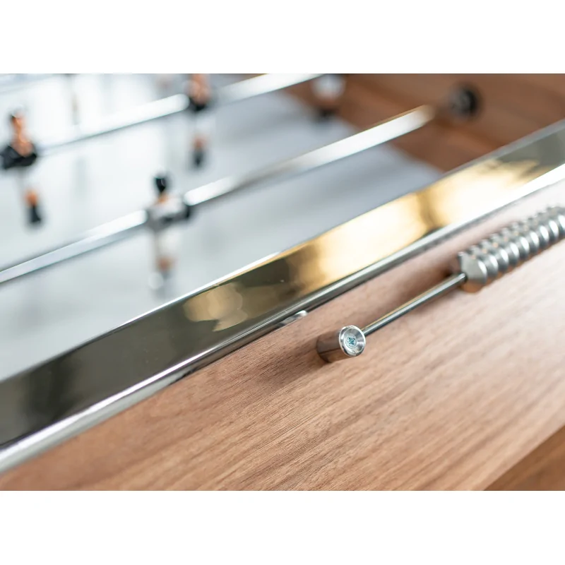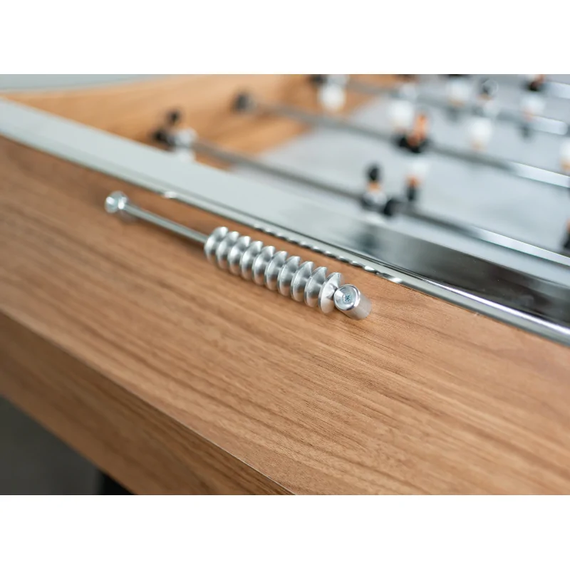 Sa structure en bois MDF haute densité assure une stabilité parfaite et une longévité exceptionnelle, même après des années d'utilisation. Les barres télescopiques en acier chromé, à la fois solides et légères, permettent des mouvements précis et souples. Quant aux joueurs en aluminium, ils allient résistance et élégance, offrant un confort de jeu optimal.