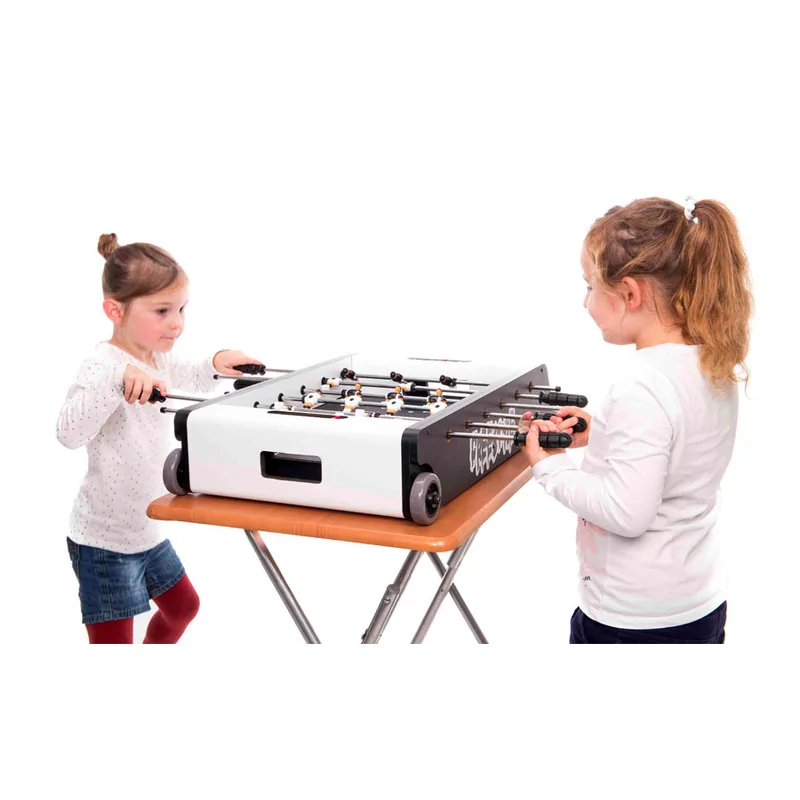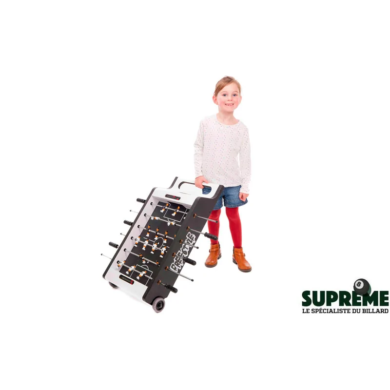 La table Freestyle Noir est fabriquée avec des matériaux robustes pour garantir durabilité et stabilité lors des parties. La structure bien équilibrée assure une excellente tenue au sol, quel que soit le mode de jeu choisi. L'intégration du plateau air hockey ne compromet pas la qualité du jeu baby-foot : chaque surface a été pensée pour offrir des sensations de jeu fluides et réactives.