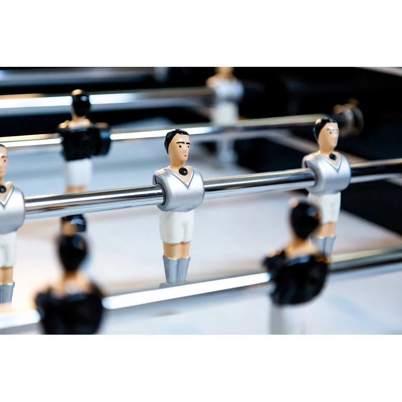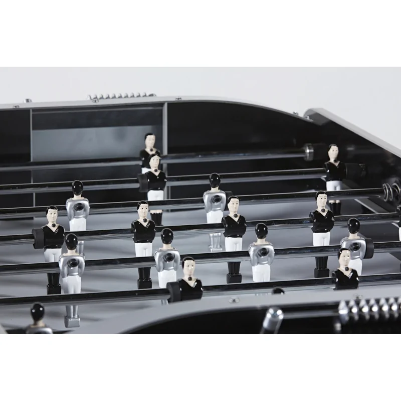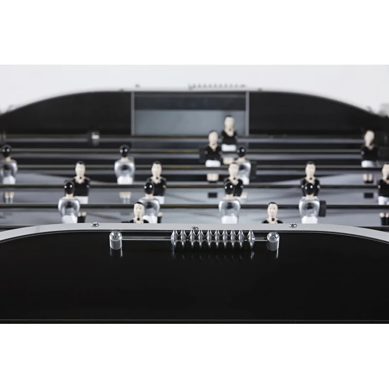 Les joueurs personnalisés, vêtus de maillots noirs et gris, complètent ce look résolument moderne et minimaliste. Le résultat : un baby-foot au style unique, capable de séduire aussi bien les amateurs de design que les passionnés de compétition.