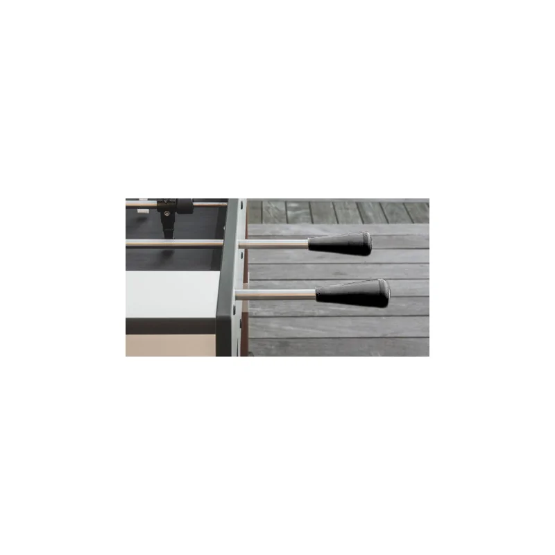 Ce baby-foot d'extérieur blanc allie design moderne et solidité pour s'intégrer parfaitement à tous les environnements, qu'ils soient intérieurs ou extérieurs. Sa structure en stratifié HPL massif, associée à des pieds en bois Moabi traité, assure une résistance optimale aux chocs, à l'usure et aux intempéries. Que ce soit sur une terrasse, dans un jardin, un salon ou une salle de jeux, il conserve stabilité et style.