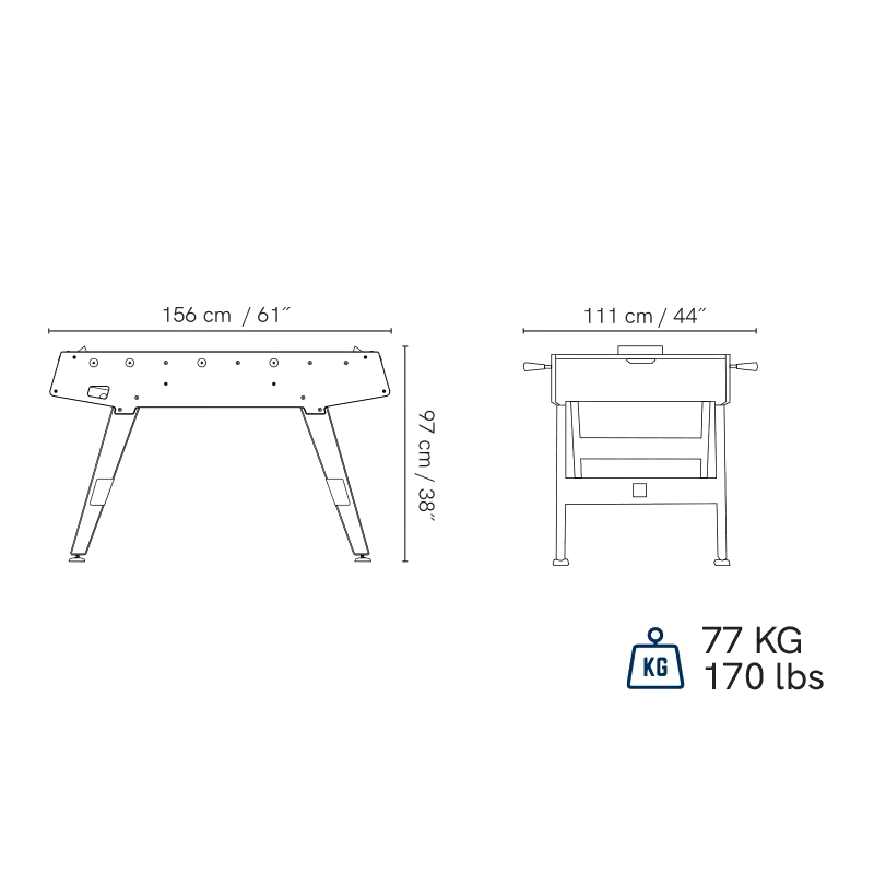 Poids du baby-foot : 77 kg