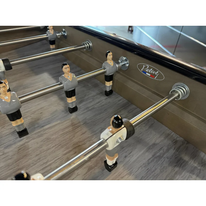Le PETIOT 200 Gris Tourterelle est conçu pour offrir une excellente stabilité et une grande résistance à l'usage. Sa caisse en bois massif garantit une structure robuste, capable de supporter des parties répétées sans perte de performance. Les barres télescopiques en acier chromé assurent une manipulation fluide et sécurisée, tandis que les joueurs en aluminium peints à la main offrent un contrôle précis de la balle et une longévité remarquable. Chaque élément est assemblé avec soin pour garantir une qualité de jeu constante dans le temps.