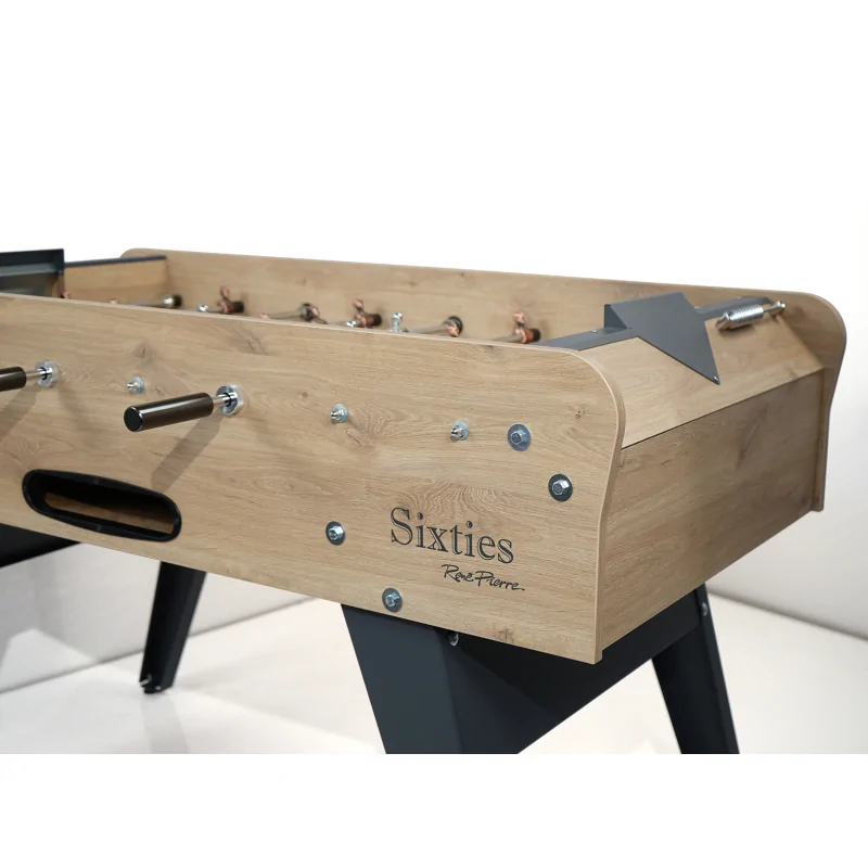 Le baby-foot Sixties de René Pierre fait renaître l'esprit des années 60 avec un style à la fois nostalgique et contemporain. Inspiré des modèles emblématiques de cette époque, il arbore une caisse aux lignes droites, des couleurs vintage et les célèbres pieds triangulaires métalliques qui ont fait la réputation de la Maison René Pierre. Véritable hommage à une décennie mythique, ce baby-foot mêle élégance rétro et modernité technique, pour un rendu aussi esthétique que performant.