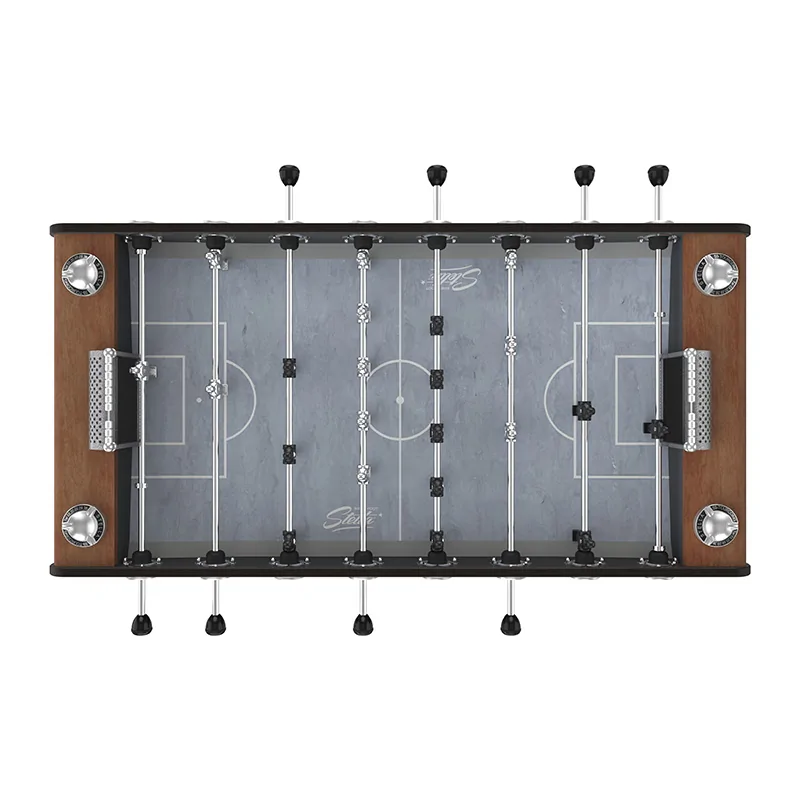 Le Baby-foot Stella Champion Millesime Outdoor Gris Anthracite allie élégance vintage et robustesse pour vos espaces extérieurs. Conçu pour résister à toutes les conditions, ce modèle est entièrement inoxydable grâce à ses paliers, barres, visseries et boulonneries en inox. Sa caisse en stratifié compact HPL protège parfaitement contre l'eau et les éclaboussures, permettant de jouer sous la pluie ou de nettoyer facilement au jet d'eau. Un baby-foot durable, pratique et esthétique, idéal pour transformer votre terrasse ou jardin en espace de jeu haut de gamme.