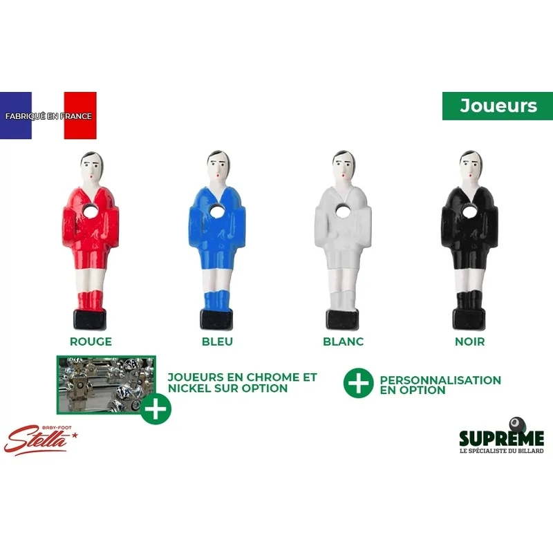 Le Stella Home Hêtre est fabriqué avec des matériaux durables, offrant stabilité et robustesse. Sa structure assure un excellent maintien pendant les parties animées, tandis que les barres et joueurs sont conçus pour résister à un usage quotidien. Ce modèle offre un équilibre parfait entre confort, sécurité et sensations de jeu, faisant de chaque partie un moment agréable pour tous les membres de la famille.