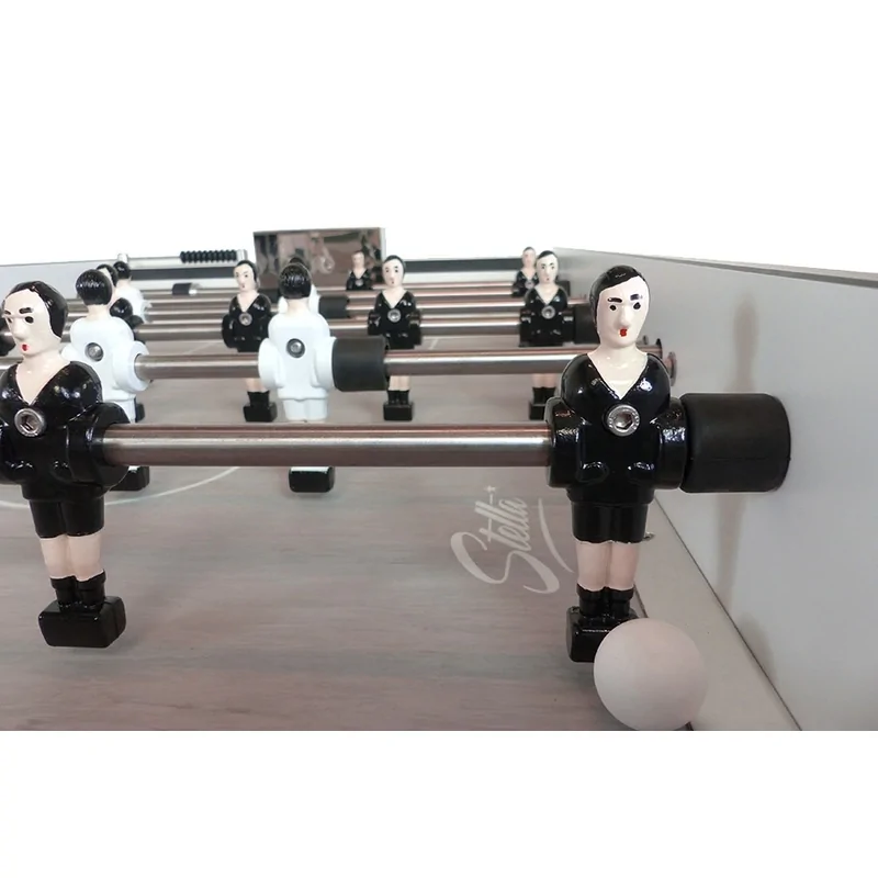 Grâce à sa production sur mesure, le Stella Home Outdoor peut être entièrement personnalisé. Couleurs des joueurs, tapis Gerflex avec sérigraphie, couleur de la caisse ou motifs personnalisés, tout est réalisable sur devis. Cette personnalisation permet de créer un baby-foot unique, reflétant vos goûts ou l'identité de votre espace extérieur.