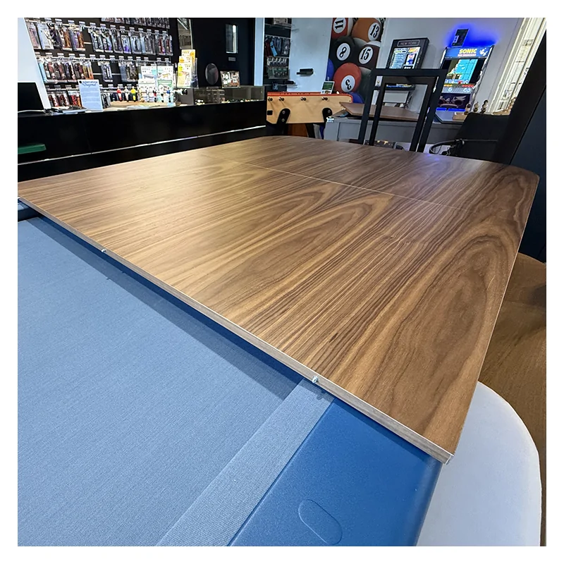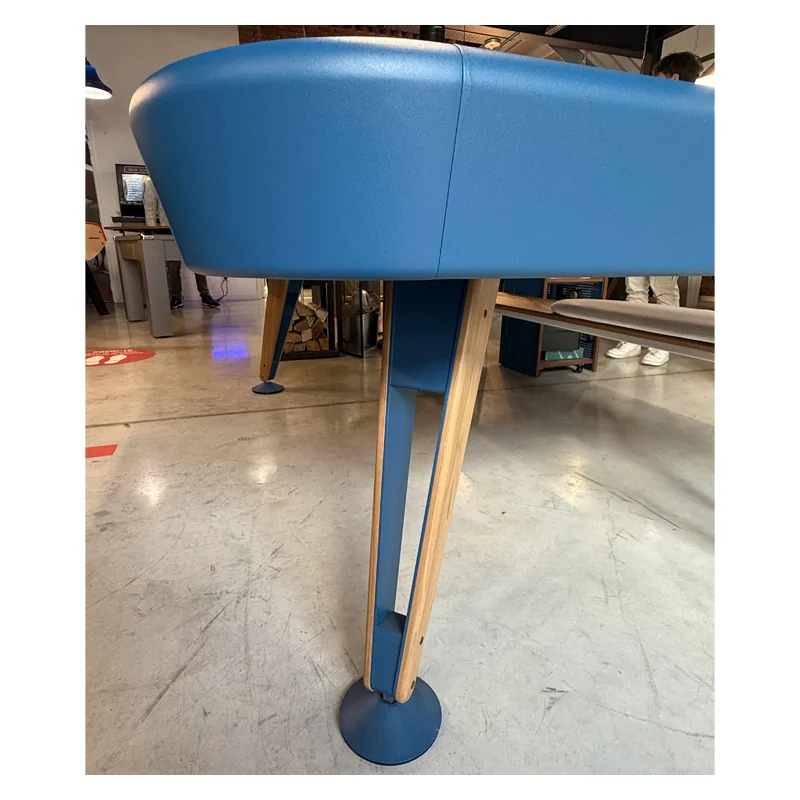 Ce billard RS Diagonal se distingue par une conception solide et durable. Sa structure est pensée pour minimiser les vibrations, même lors de parties animées, garantissant une base de jeu parfaitement régulière et stable. Les pieds et plateaux en noyer massif apportent non seulement une robustesse exceptionnelle mais créent également un contraste visuel riche et chaleureux avec la teinte bleu profond du plateau. Le noyer, bois noble réputé pour sa durabilité et son esthétique, donne à ce modèle d'exposition une allure haut de gamme qui s'harmonise avec différents styles d'intérieur, du contemporain au plus classique revisité.