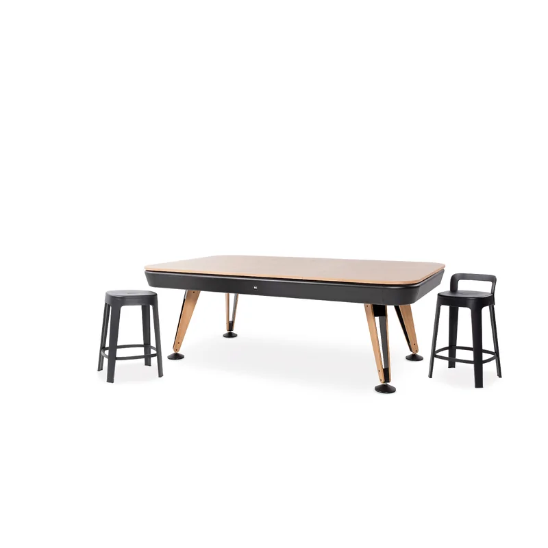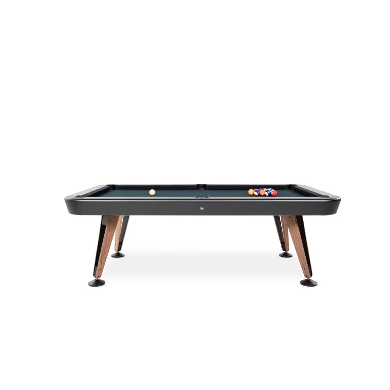Le billard Américain RS Diagonal coloris noir repose sur une structure solide et stable conçue pour durer dans le temps. L'armature robuste minimise les vibrations, même lors des parties les plus animées, garantissant une base de jeu parfaitement régulière. La finition noire profonde confère à cette table une élégance contemporaine qui s'intègre facilement à de nombreux styles d'intérieur, du plus minimaliste au plus sophistiqué. Les lignes diagonales caractérisent le design et apportent une dynamique visuelle unique.