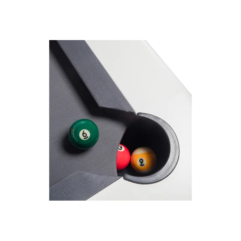 Avec ses 8 pieds, il s'intègre parfaitement dans les salons spacieux ou les salles de jeux dédiées. Le feutre blanc diagonal et les finitions soignées en font un élément décoratif élégant tout en offrant une expérience de jeu fluide et authentique. Les bandes réactives et la stabilité de la structure assurent des parties confortables et agréables, que ce soit en famille ou entre amis.