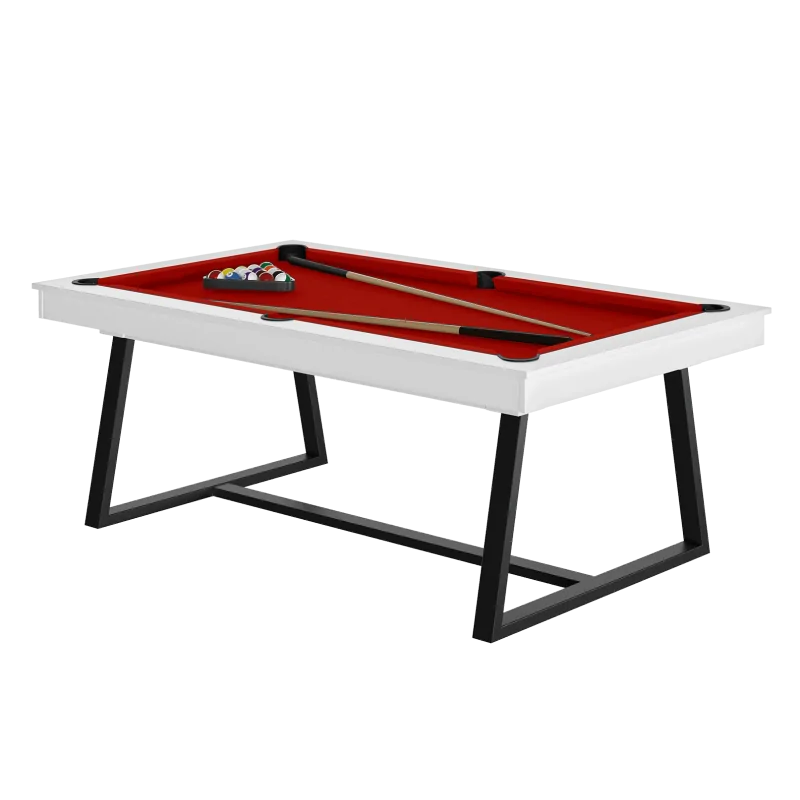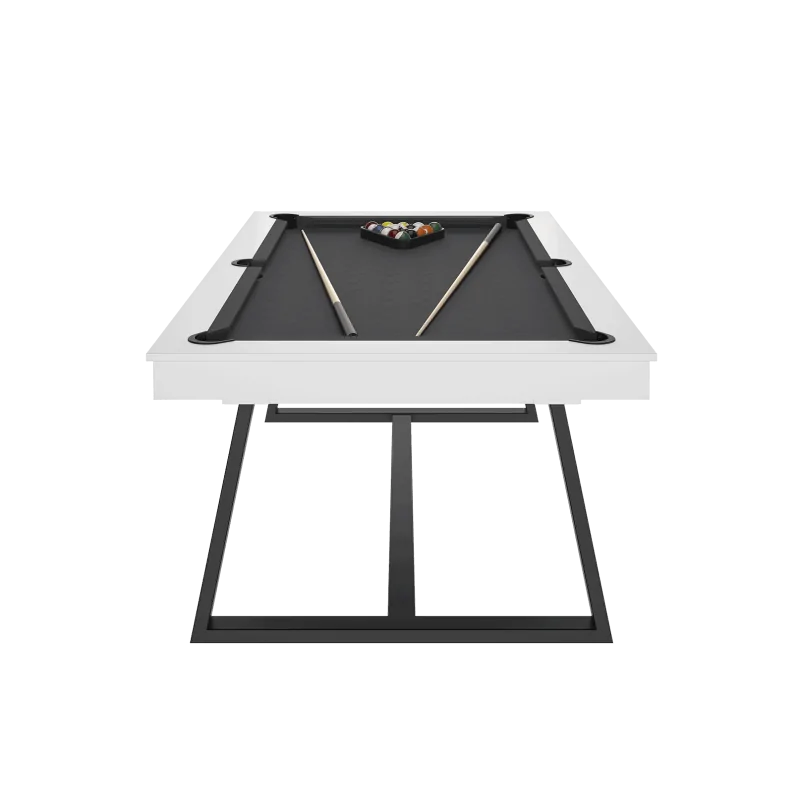 Le billard BRIO Blanc se distingue par son esthétique minimaliste et chic. Les pieds légèrement inclinés, sess finissions soignées apportent une élégance discrète qui s'intègre dans tous les types de décor : salon, salle de jeux, espace de coworking ou loft moderne.