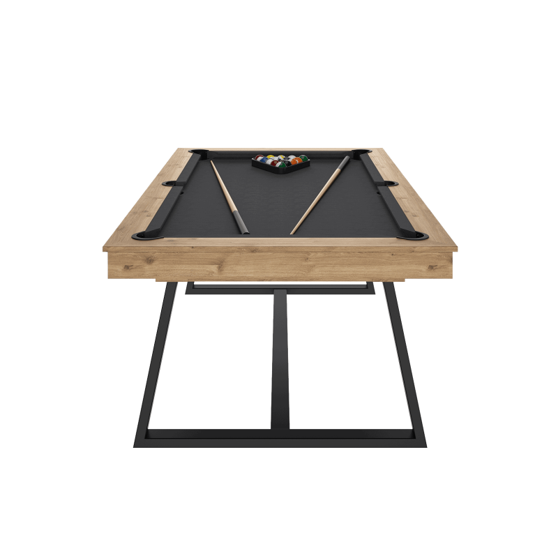 Le billard BRIO Chêne Sablé se distingue par son esthétique minimaliste et chic. Les pieds légèrement inclinés, sess finissions soignées apportent une élégance discrète qui s'intègre dans tous les types de décor : salon, salle de jeux, espace de coworking ou loft moderne.