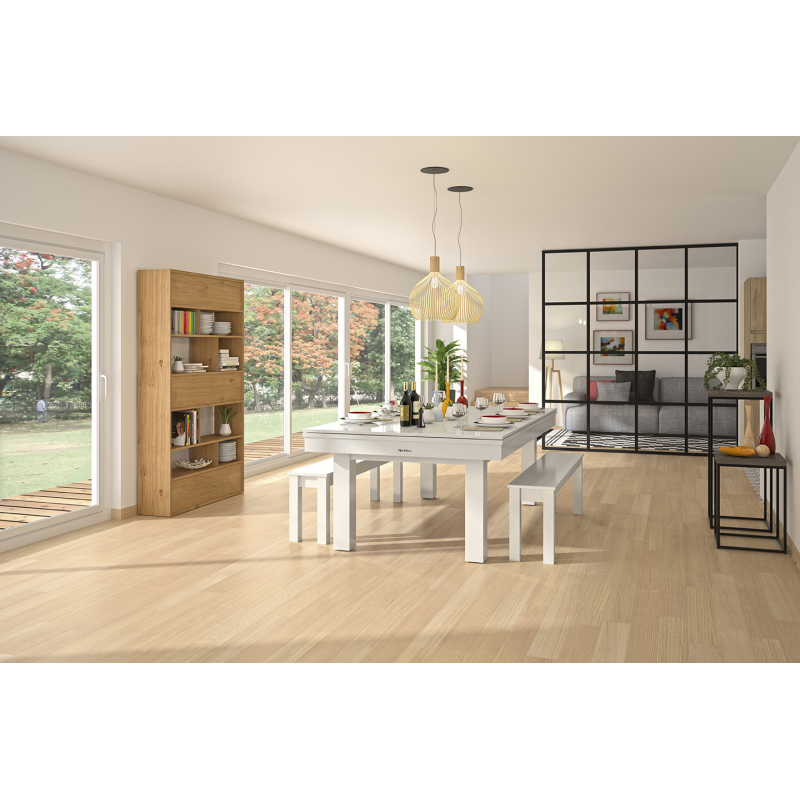 Le blanc laqué du billard américain LAFITE sublime la pièce qu'il occupe. Ses lignes droites, ses pieds massifs et ses finitions satinées en font un objet d'élégance moderne, idéal pour un salon, une salle de loisirs ou un espace de réception.