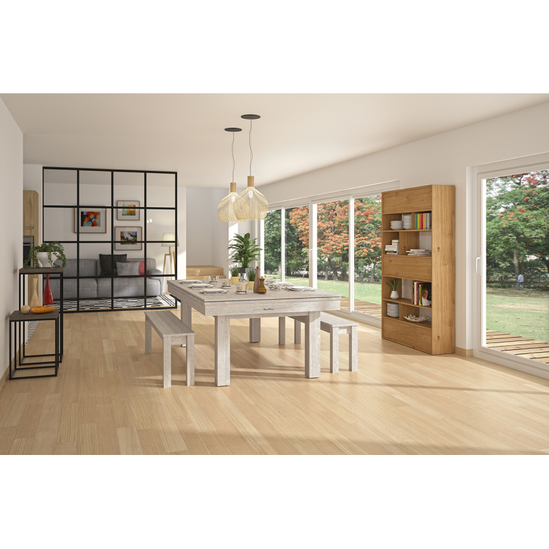 Fabriqué en France, le LAFITE Oslo associe bois massif et MDF haute densité pour garantir une structure solide et stable. Les pieds massifs assurent un parfait équilibre, tandis que la finition gris clair effet bois apporte un style résolument contemporain, à la fois doux et moderne.
