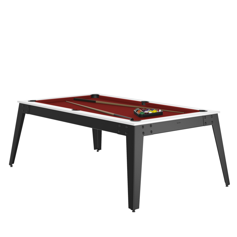 Le contraste du cadre blanc brillant et des pieds en métal gris confère au Billard Steel une allure raffinée et urbaine. Son design « loft industriel chic » s'adapte aussi bien à une salle à manger moderne qu'à un espace de détente élégant.