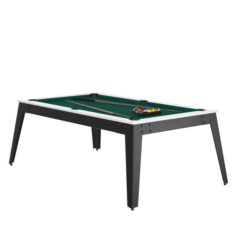 Finie l'obligation d'avoir une pièce dédiée au billard : le Billard Steel se transforme en table à manger grâce à un plateau en deux parties (optionnel) qui s'installe en quelques minutes, permettant d'accueillir vos repas tout en conservant un mobilier élégant. Ainsi, vous investissez dans un meuble polyvalent.