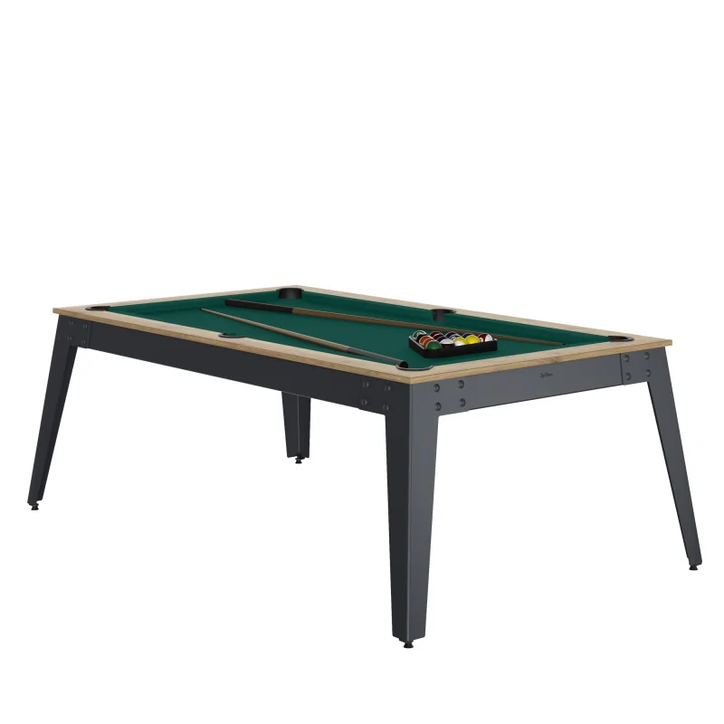 FAvec le Billard Steel, inutile d'avoir une salle dédiée au jeu : ce billard convertible se transforme aisément en table à manger design grâce à un plateau en deux parties (optionnel) qui s'installe en quelques minutes. Élégant et pratique, il vous permet de concilier plaisir du jeu, convivialité et esthétique moderne dans un seul et même meuble.