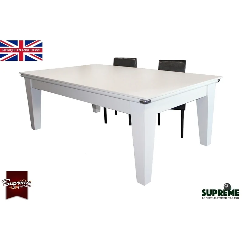 La table repose sur une structure solide et des pieds stables qui assurent une excellente stabilité, même lors des parties les plus animées. Les matériaux de qualité supérieure offrent une résistance accrue aux chocs et aux rayures pour une durabilité remarquable dans le temps. La finition blanche haut de gamme conserve son aspect neuf même après un usage quotidien intensif.