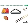 Livré avec : 2 queues standards de 136 cm, 1 jeu de billes Pool 50,8 mm, 1 triangle et 2 craies.