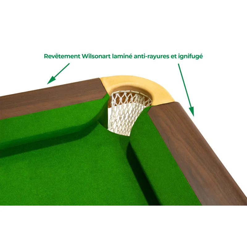 Le drap standard est compris et livré sans surcoût avec ce billard (Vert Anglais)
