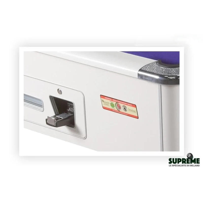 Ce billard est équipé d'un monnayeur intégré, idéal pour les lieux publics ou les clubs. Il permet un contrôle simple et efficace de l'accès au jeu, tout en assurant une utilisation durable et fiable. Le mécanisme est conçu pour résister à un usage intensif tout en restant facile à entretenir.