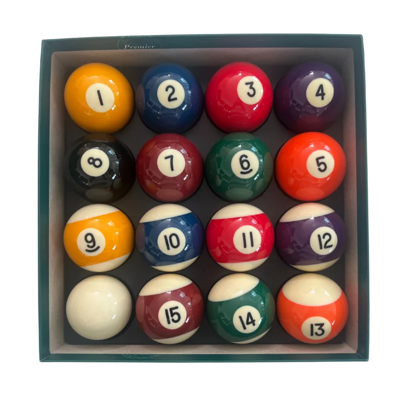 Les Billes Américaines Aramith 50,8mm Premier sont conçues pour les joueurs de billard à la recherche de qualité, de précision et de durabilité. Fabriquées en résine phénolique de qualité professionnelle, ces billes offrent une rondeur et un équilibrage exceptionnels, assurant une trajectoire régulière et parfaite lors de chaque impact. Leur diamètre standard de 50,8mm les rend compatibles avec les tables de billard américain et pool anglais équipées pour ce format.