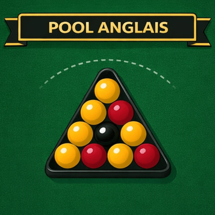 Le jeu utilise un triangle pour assembler les billes avant la casse. L’objectif est d’empocher toutes vos billes de couleur, puis la noire pour gagner.