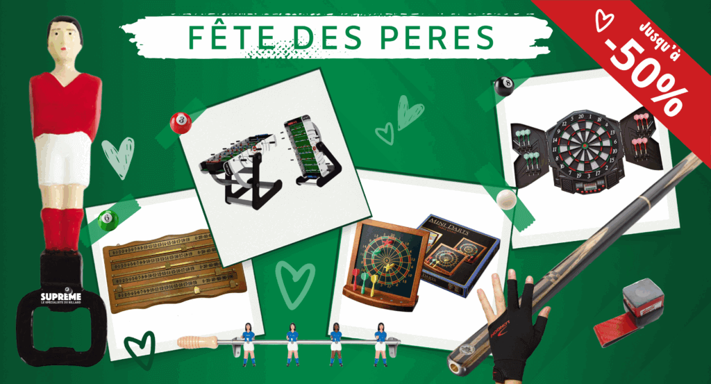 🎯 Ne tardez pas à passer commande : la fête des Pères est le moment idéal pour faire découvrir ou redécouvrir l’univers du billard à ceux que l’on aime.