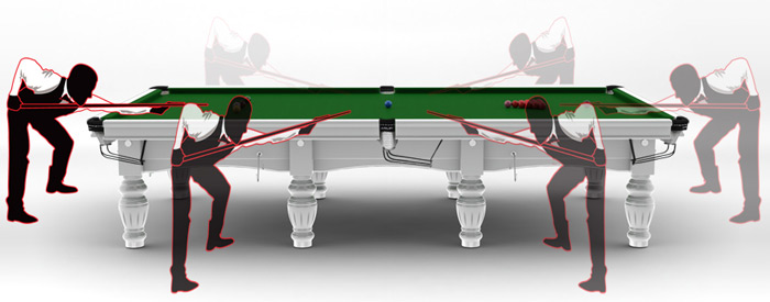 Les obstacles tels que piliers, pans de mur, cheminées ou meubles hauts peuvent être contournés avec des queues courtes. Les meubles de moins de 0,80 m de hauteur ne gênent pas le jeu.