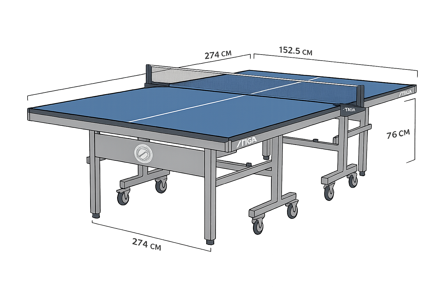 Une table de ping-pong aux dimensions réglementaires offre un espace de jeu parfaitement équilibré pour tous les niveaux. Elle mesure 274 cm de longueur, 152,5 cm de largeur et 76 cm de hauteur, garantissant une expérience fidèle aux standards officiels.