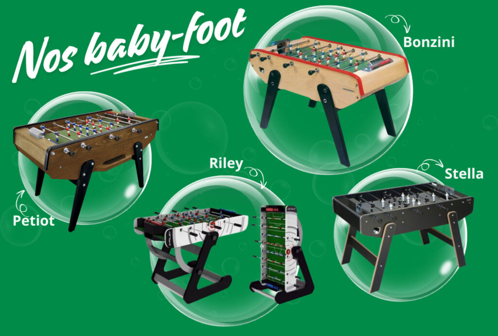 - Les baby-foot avec des équipes personnalisables permettent d’ajouter une touche unique.