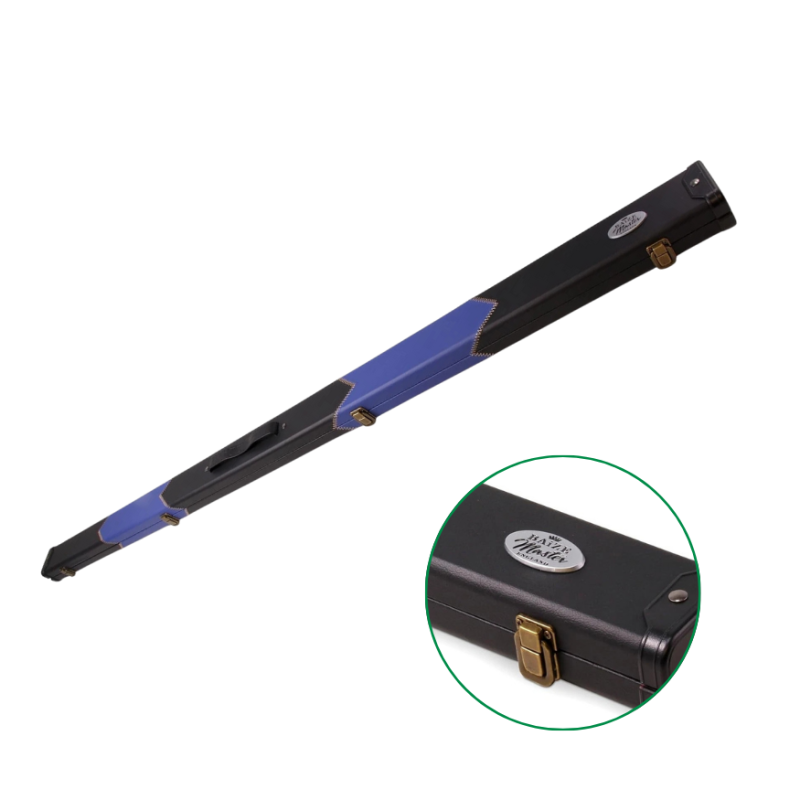 Le Boîtier Baize Master Arrow Bleu pour 2 queues Monobloc allie solidité, fonctionnalité et design moderne. Il constitue un investissement durable pour tous les passionnés de billard souhaitant protéger leur matériel avec style. Il peut également être offert en cadeau à un joueur de billard, combinant praticité et élégance dans un même accessoire.
