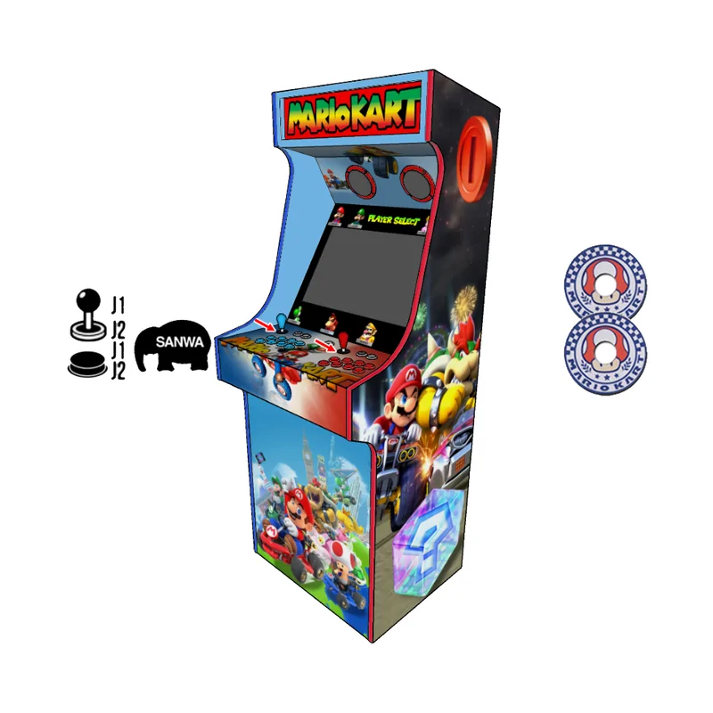 La borne d'arcade Mario Kart est une solution de jeu rétro-moderne qui permet de revivre les sensations uniques des parties de Mario Kart dans un format arcade. Pensée pour les fans de jeux de course emblématiques, elle combine un gameplay intuitif avec un design immersif qui rappelle l'univers coloré et compétitif de la franchise. Idéale pour une salle de jeux, un espace détente ou une collection privée, cette borne promet des heures d'amusement seul ou entre amis.