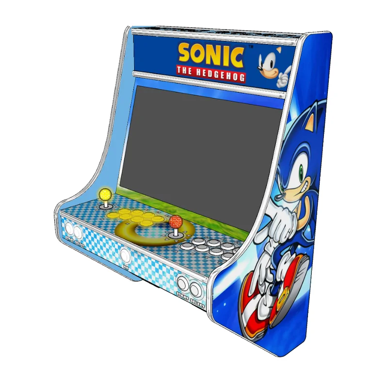 La borne d'arcade murale Sonic est une machine au format mural pensée pour les fans de l'univers du célèbre hérisson bleu et pour tous les amateurs de rétro gaming. Son habillage reprend les codes visuels emblématiques inspirés de Sonic, avec des couleurs vives et des motifs dynamiques qui apportent une touche esthétique forte à votre espace de jeux, salle de loisirs ou bar à thème. Le thème Sonic reste décoratif sans modifier le contenu des jeux proposés.
