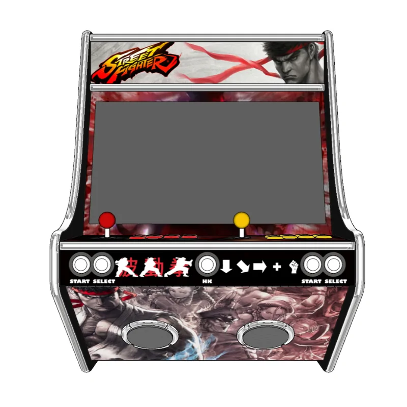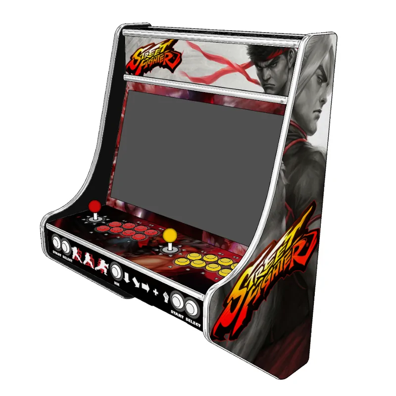 La borne d'arcade murale Street Fighter est une machine au format mural pensée pour les amateurs de jeux rétro et de culture gaming emblématique. Son habillage reprend les visuels et l'ambiance visuelle inspirés de l'univers Street Fighter, avec des couleurs dynamiques et des éléments graphiques qui rappellent l'esprit des jeux de combat classiques. Ce thème mural apporte une touche décorative forte à votre espace de loisirs, salle de jeux ou bar à thème, tout en conservant les jeux d'arcade multijeux classiques.