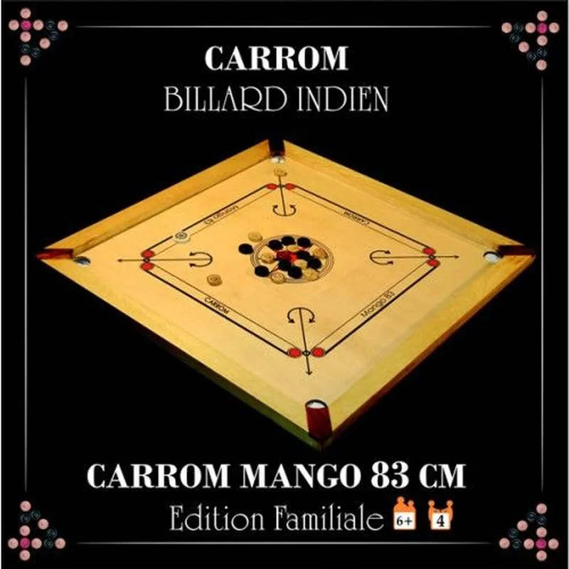 Le carrom ou billard indien est originaire d'Inde ou du Népal. Il se joue avec des pions que l'on fait glisser sur la table. Le but du jeu est d'envoyer les pions dans des poches