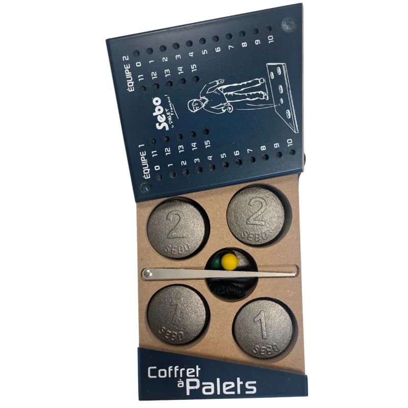 Coffret avec sérigraphie jeu Palets règlementaire compas aimant lève palets