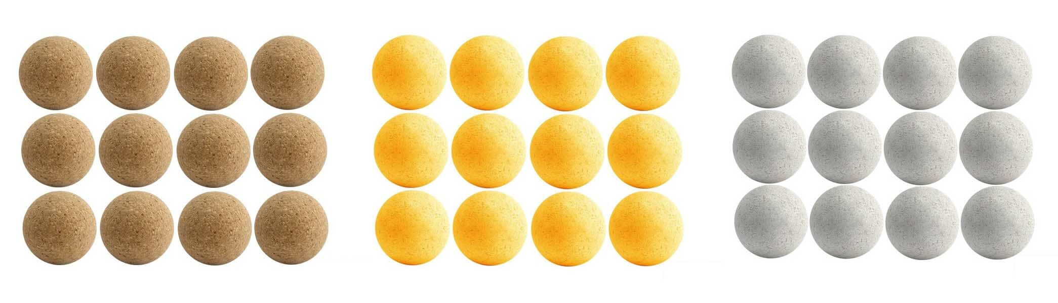 Côté résistance, elles s’abîment moins vite que les balles en liège. De ce fait, elles sont recommandées pour les utilisations extérieures des babyfoots.