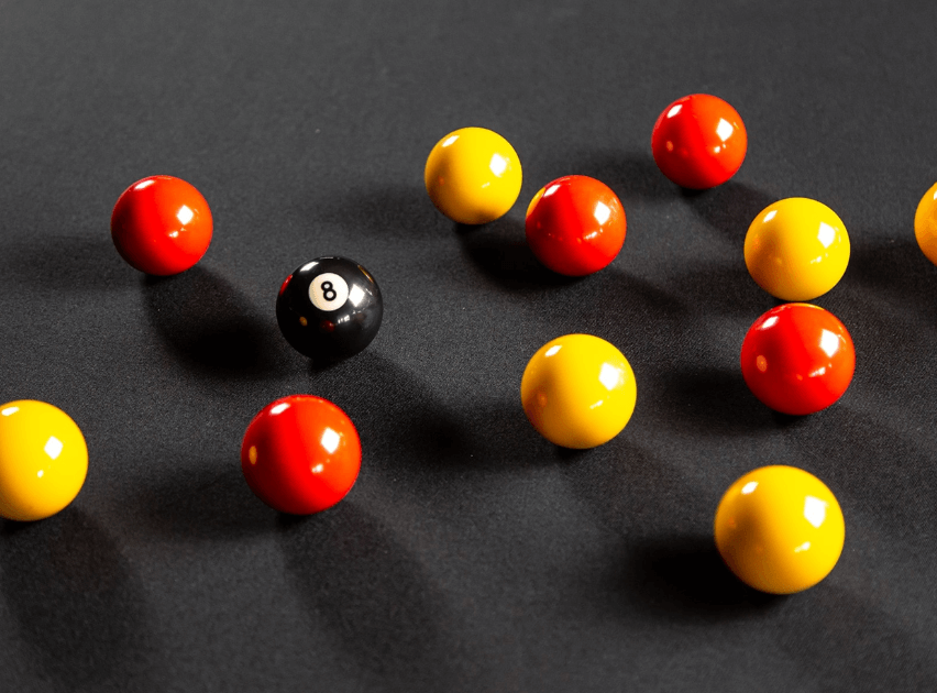 Le jeu se déroulera sur un Billard rectangulaire à 6 « Poches » avec un nombre de 14 billes de couleur, une bille noire numéro 8 et une bille blanche. Les 14 billes de couleur sont séparées en 2 groupes : un groupe de 7 billes rouges, un groupe de 7 billes jaunes.