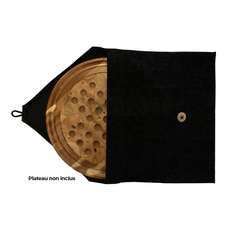 Etui de rangement pour jeu solitaire composé d'un étui pour le solitaire et d'une bourse en tissu coton écru pour les perles. L'étui de rangement pour jeu de solitaire en tissu velours noir est un accessoire pratique et élégant qui permet de protéger et de transporter votre jeu de solitaire préféré. Fabriqué à partir d'un tissu velours noir doux et résistant, cet étui offre une protection optimale contre les chocs et les rayures. Excellent choix de cadeau pour un ami ou un membre de la famille qui apprécie les jeux de société.
