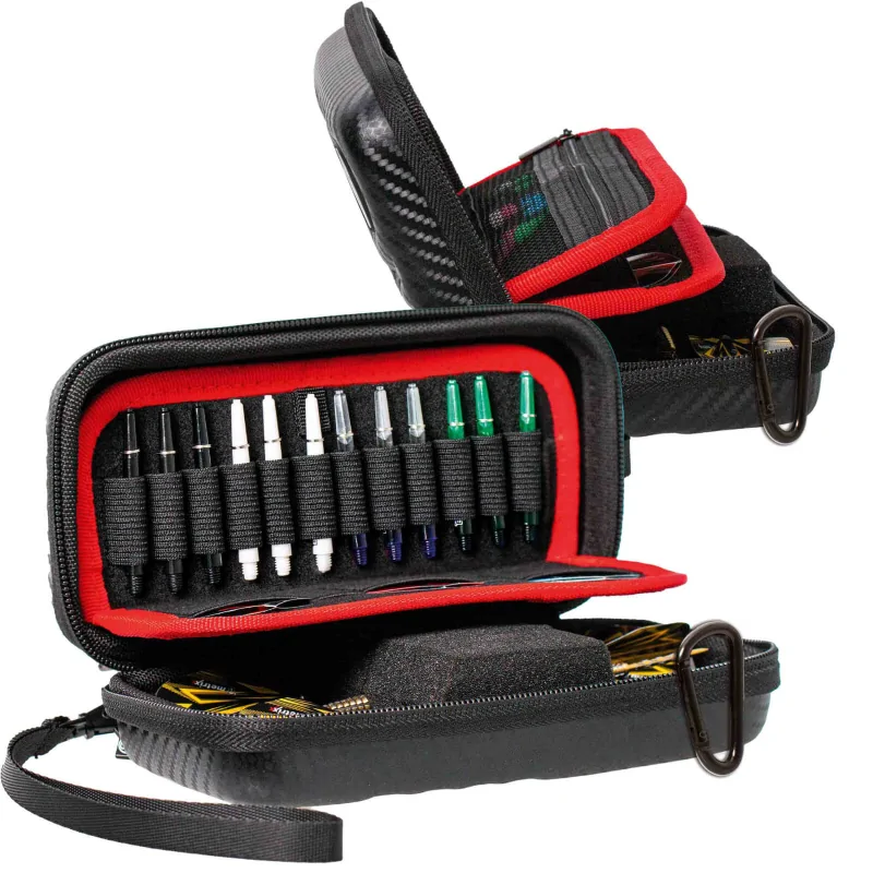 L'intérieur est pensé pour accueillir un jeu de fléchettes montées et plusieurs accessoires essentiels. Les compartiments spécifiques assurent un maintien parfait de chaque élément, évitant les déformations et facilitant l'accès rapide aux fléchettes pendant vos parties.