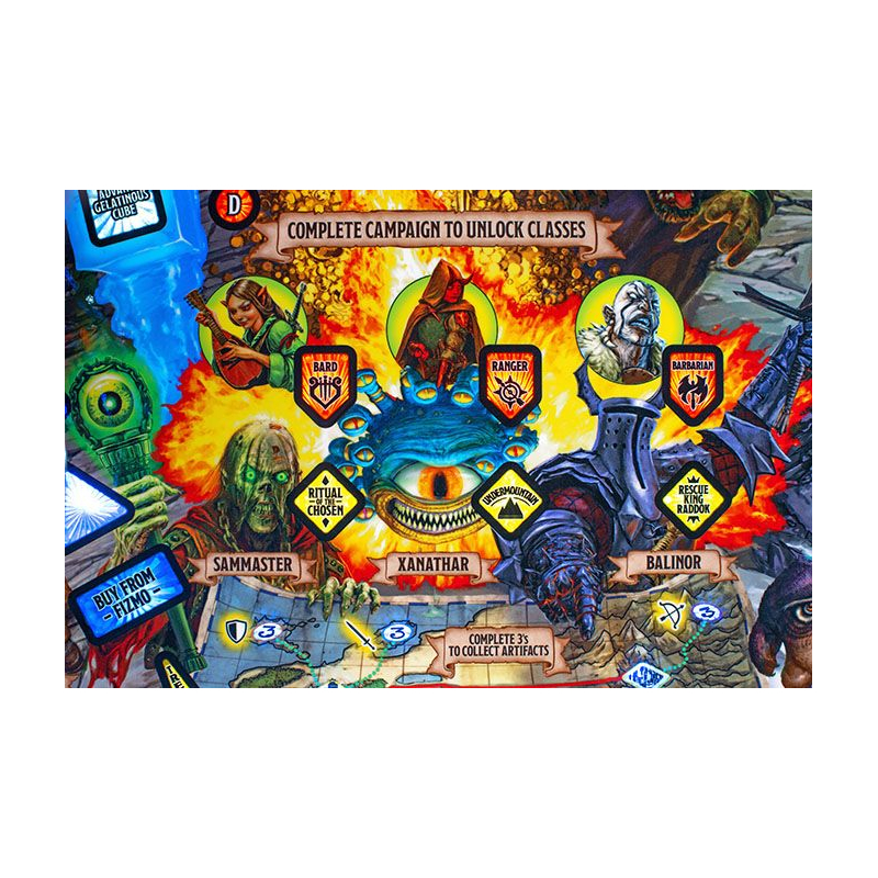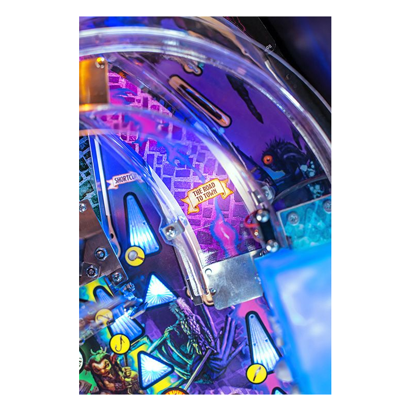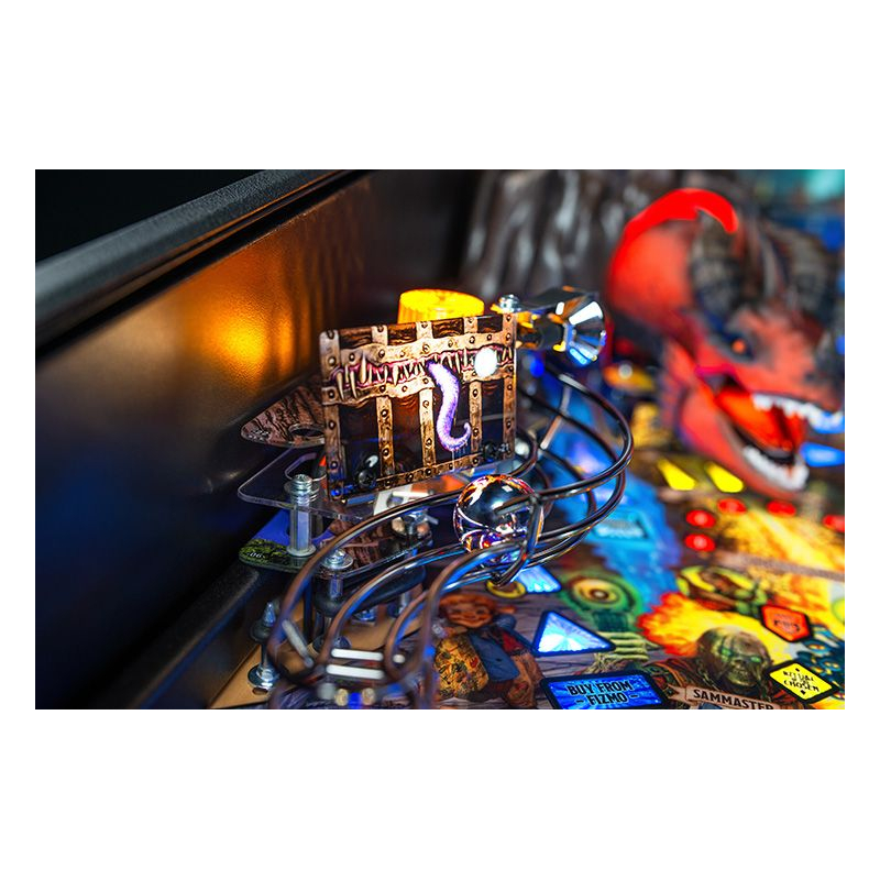 Découvrez des fonctionnalités mystérieuses et palpitantes en explorant des passages secrets, en découvrant un cube gélatineux alimenté par un électroaimant qui fige la bille de flipper, et en parcourant des niveaux de donjon dynamiques accessibles par une trappe escamotable sur le plateau de jeu. Parmi les autres fonctionnalités, vous trouverez la boutique de Fizmo où acquérir des objets uniques, un coffre au trésor libérant des monstres mimétiques, et bien d'autres secrets à percer.