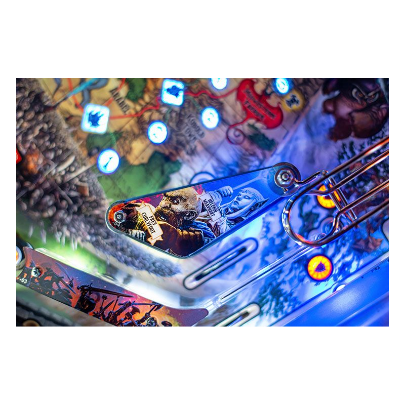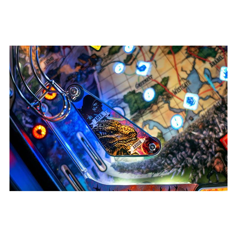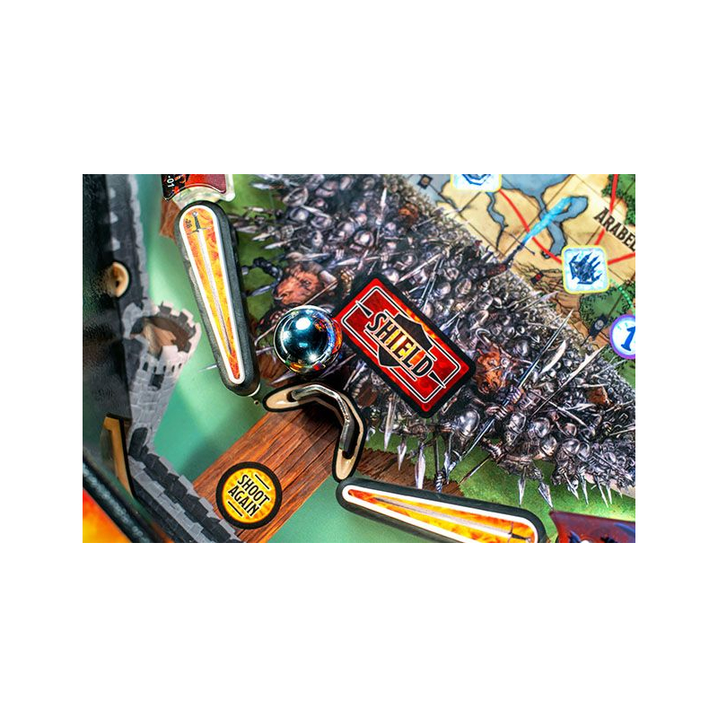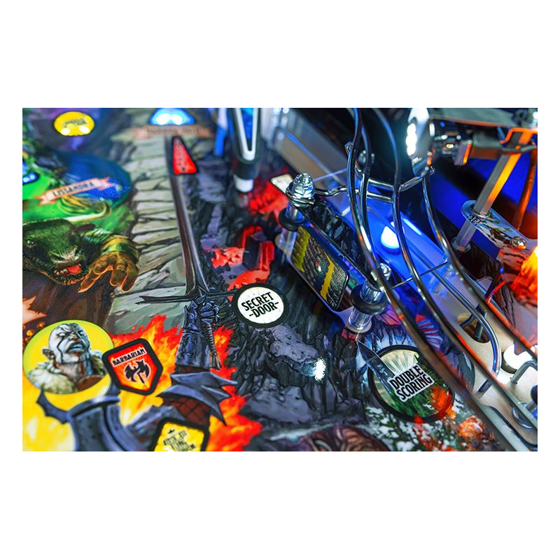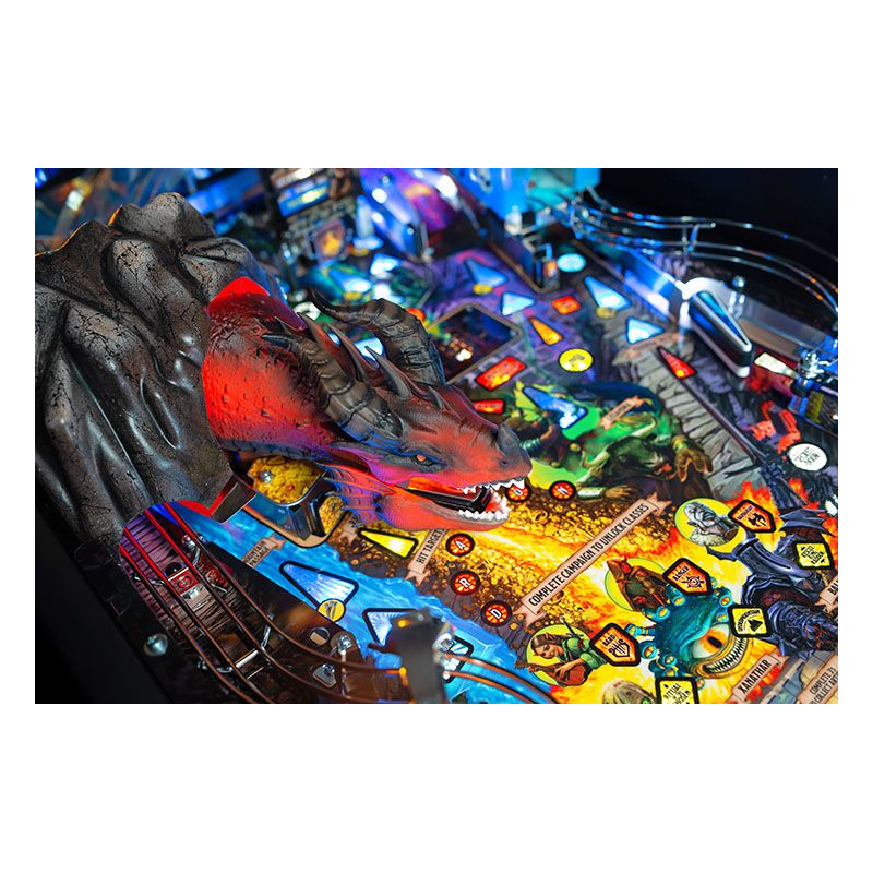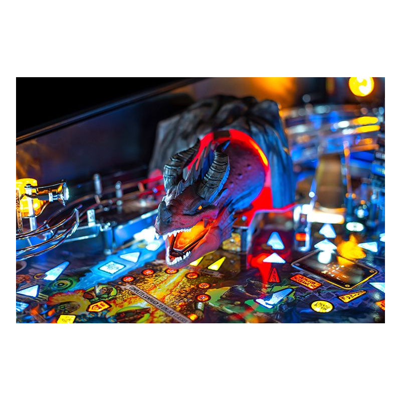 Conçu pour offrir une jouabilité dynamique et accessible, ce flipper Stern propose un plateau riche en trajectoires, missions et modes de jeu inspirés des mécaniques du jeu de rôle. Les joueurs devront affronter dragons, monstres et pièges tout en progressant dans une aventure scénarisée pleine de rebondissements. Grâce au système électronique Spike 2 et à l'écran LCD couleur, les animations, effets sonores et musiques fantasy renforcent l'immersion et donnent l'impression de participer à une véritable campagne héroïque.