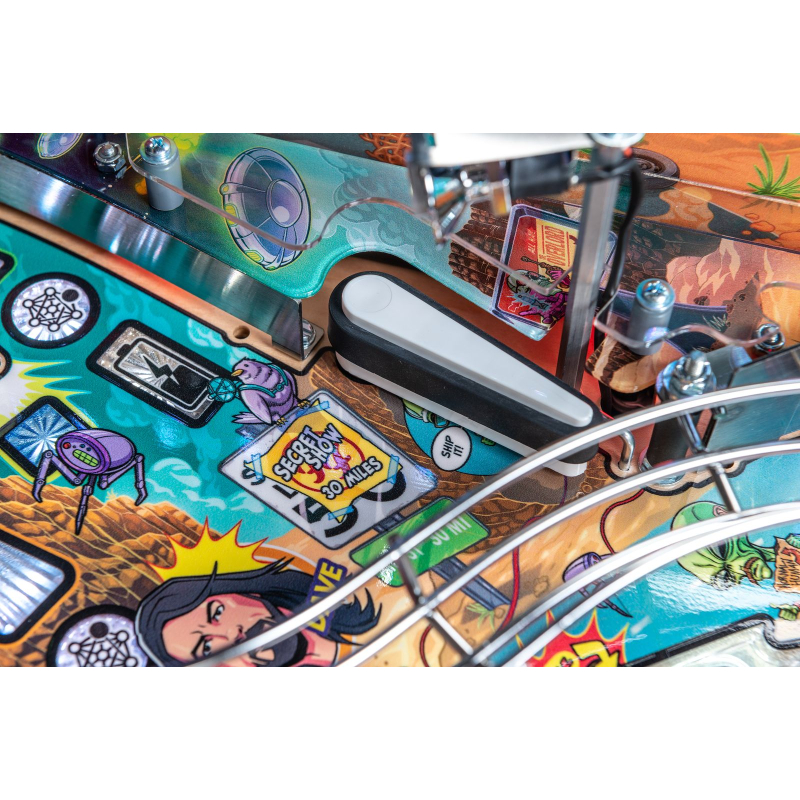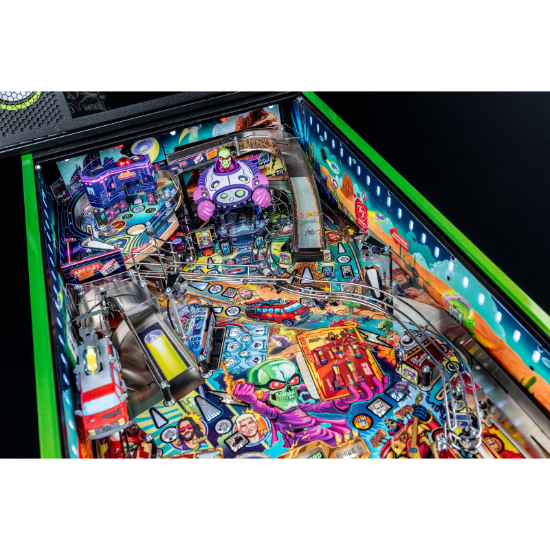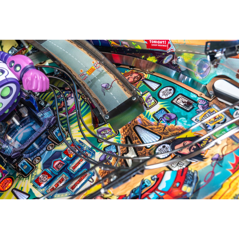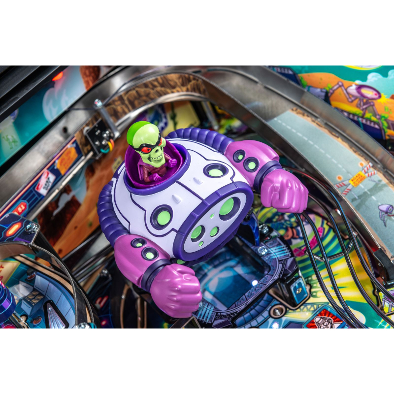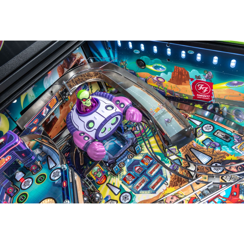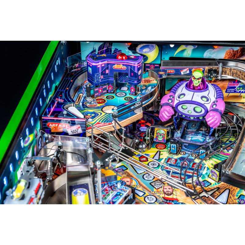 Le célèbre UFO Overlord motorisé reste l'élément central du plateau. Lorsqu'il s'active, ce vaisseau extraterrestre capture les billes et déclenche des séquences de multiball spectaculaires, accompagnées d'effets lumineux et sonores impressionnants. Cette mécanique emblématique apporte une dimension stratégique et immersive unique à chaque partie.