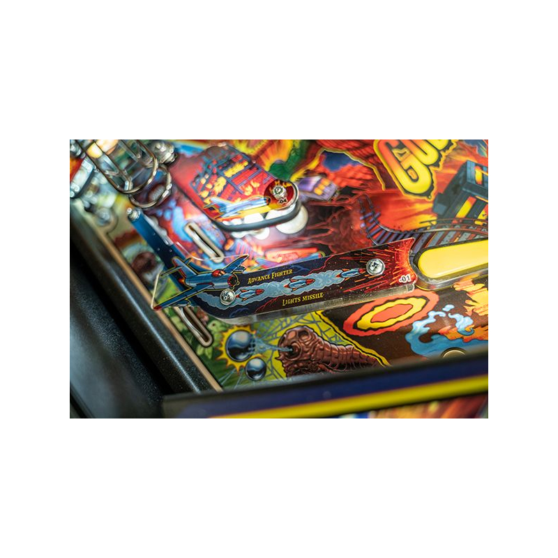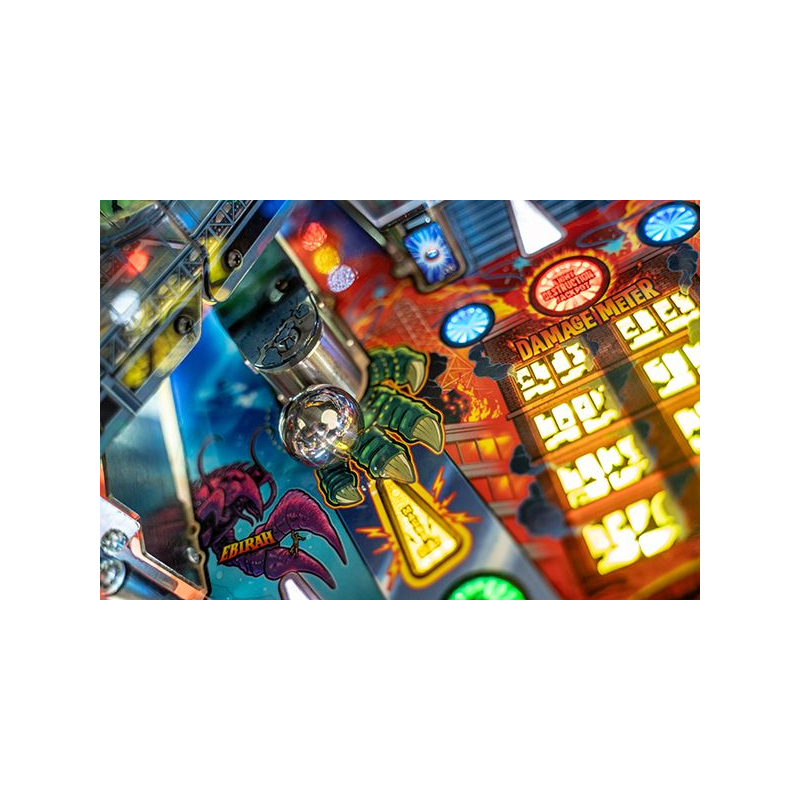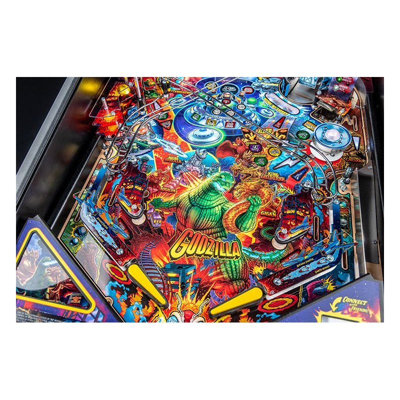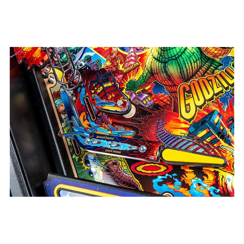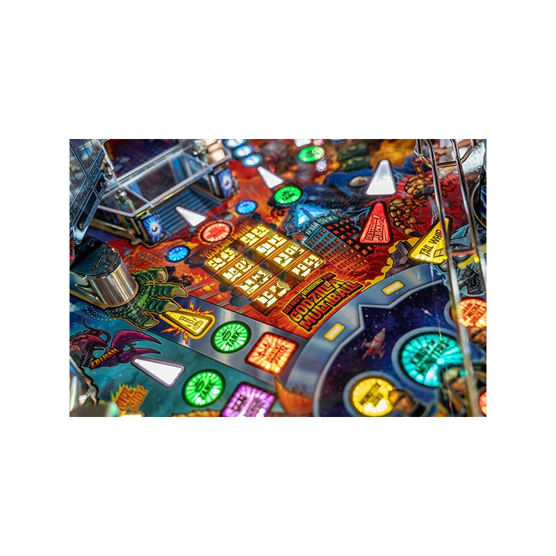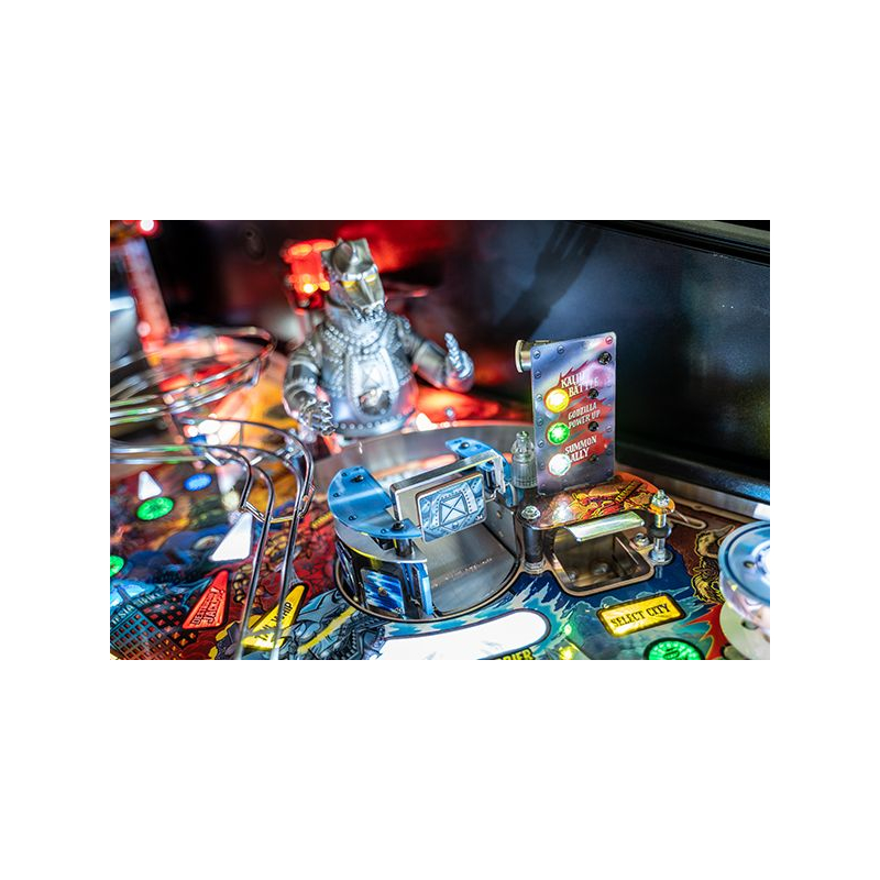Dans ce flipper moderne, les joueurs doivent protéger les villes et affronter des créatures mythiques telles que King Ghidorah, Mechagodzilla ou Rodan. Chaque partie se transforme en véritable combat de titans où précision, stratégie et rapidité seront nécessaires pour accumuler les jackpots et déclencher des multiballs explosifs. Les animations sur écran LCD, les extraits sonores inspirés des films et les effets lumineux synchronisés offrent une immersion totale dans l'univers des kaijus.