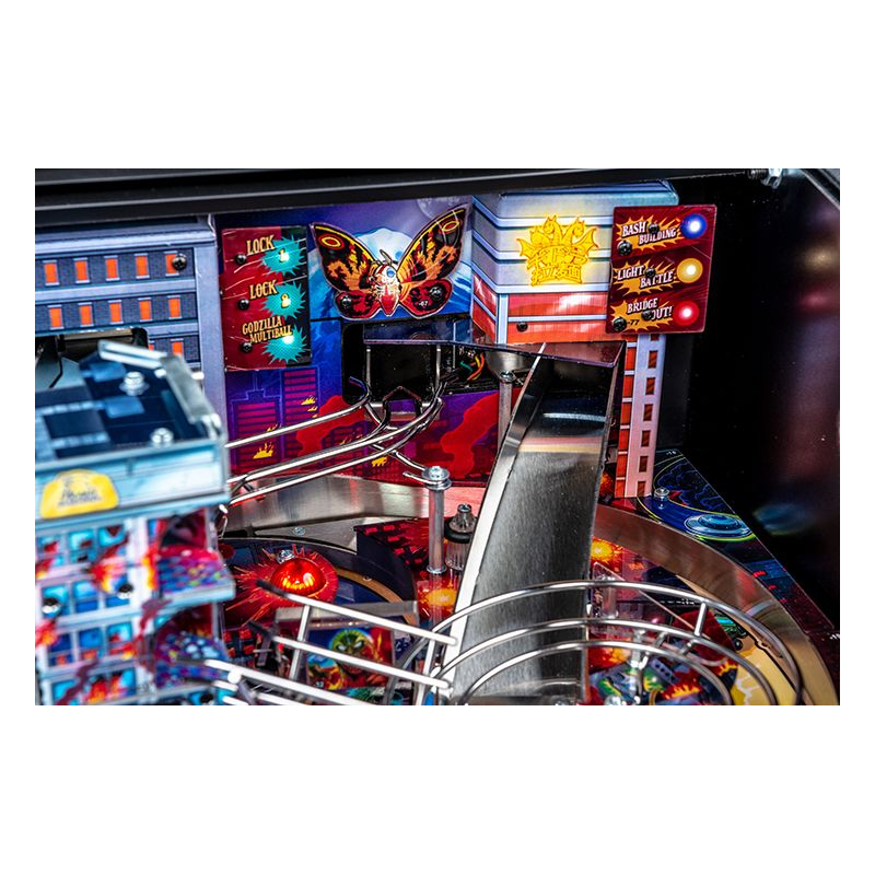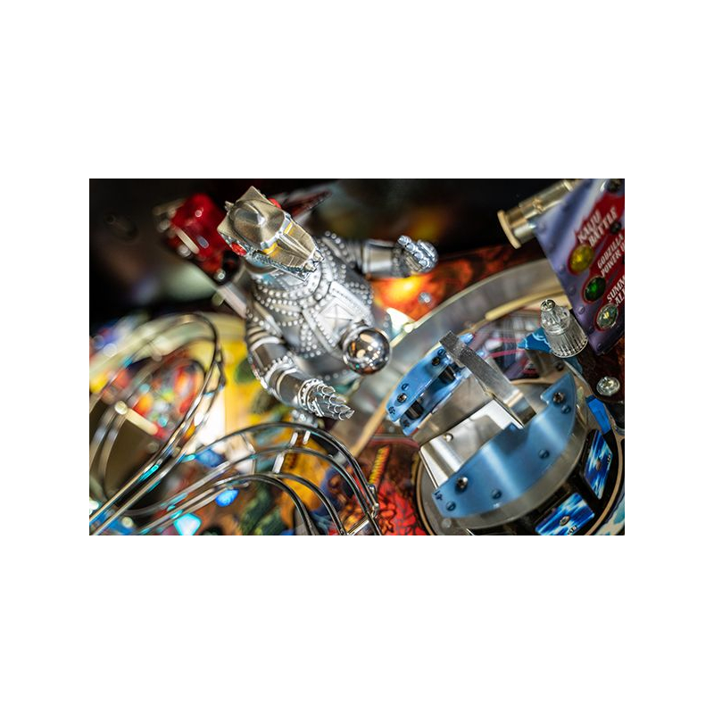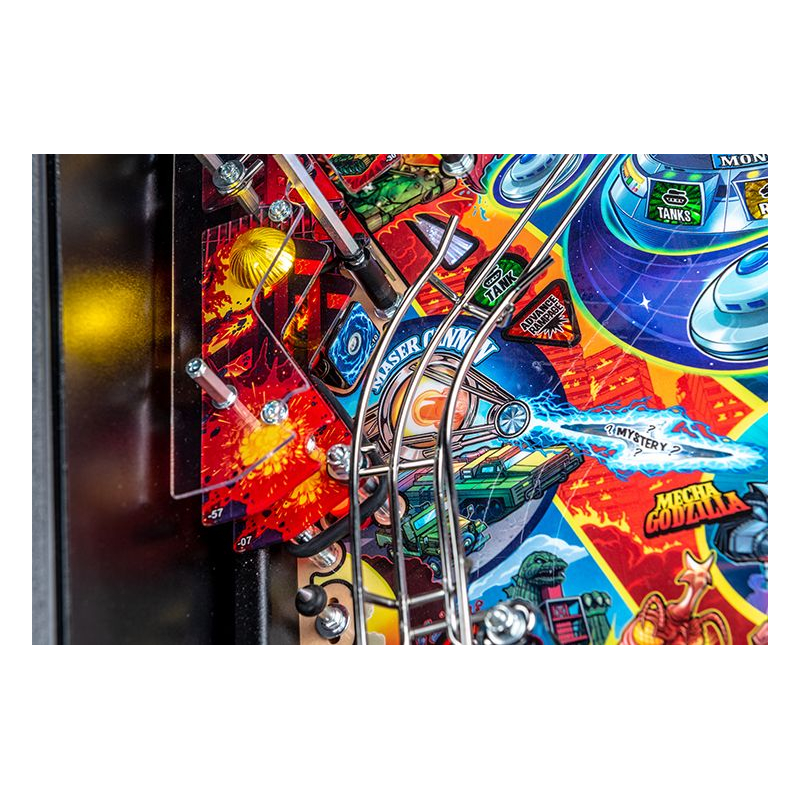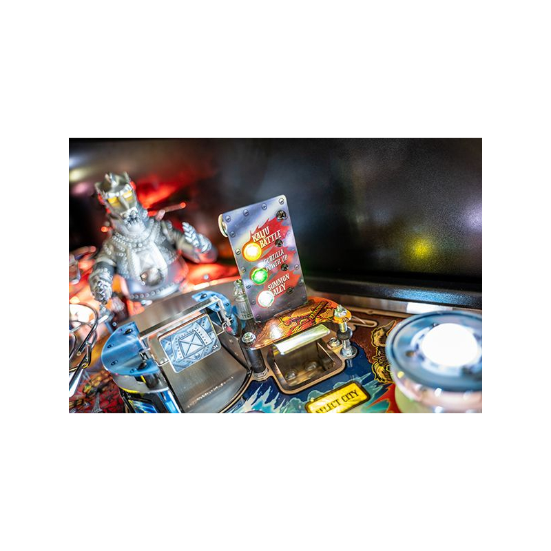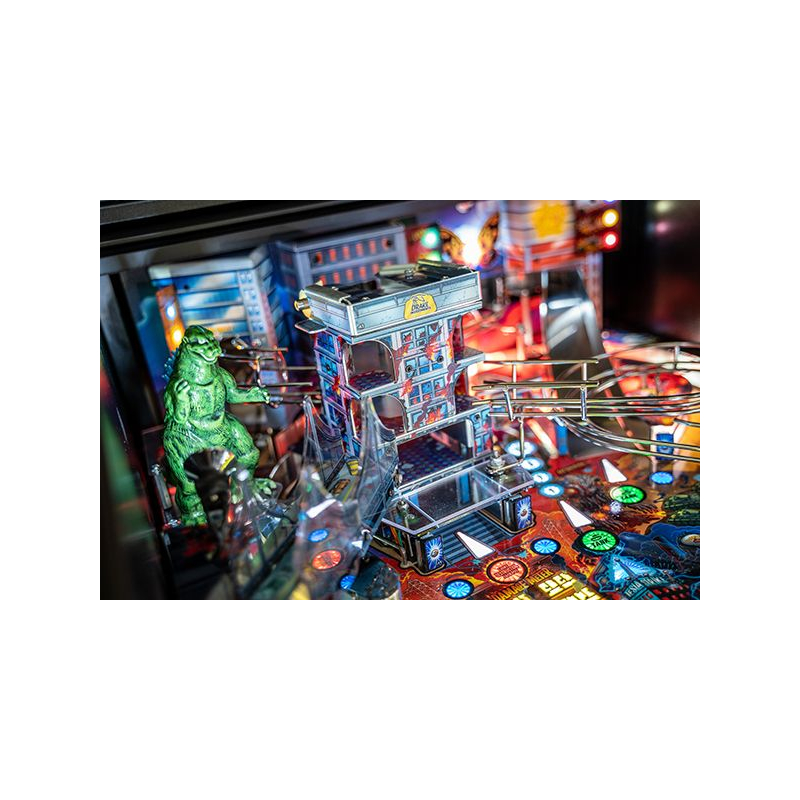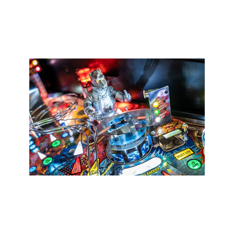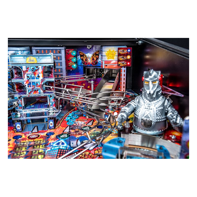La version Premium du flipper Godzilla propose plusieurs éléments mécaniques exclusifs qui rendent le plateau particulièrement vivant. Le célèbre Mechagodzilla motorisé devient un élément central du gameplay : il peut capturer les billes et déclencher des modes de multiball spectaculaires lorsque le combat s'intensifie.