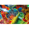 Le plateau comporte également un immeuble destructible qui s'effondre lors de certaines séquences de jeu, reproduisant l'effet spectaculaire des batailles entre monstres géants. Ces mécanismes interactifs ajoutent une dimension stratégique et visuelle unique à chaque partie.