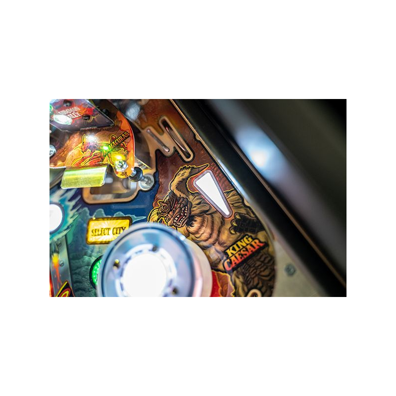 Le Flipper Godzilla édition Premium de Stern Pinball plonge les joueurs dans l'univers spectaculaire du légendaire monstre Godzilla, issu des films cultes du studio Toho Co., Ltd.. Cette version Premium enrichit l'expérience du modèle Pro avec des mécanismes interactifs supplémentaires, des animations plus immersives et un plateau encore plus spectaculaire.
