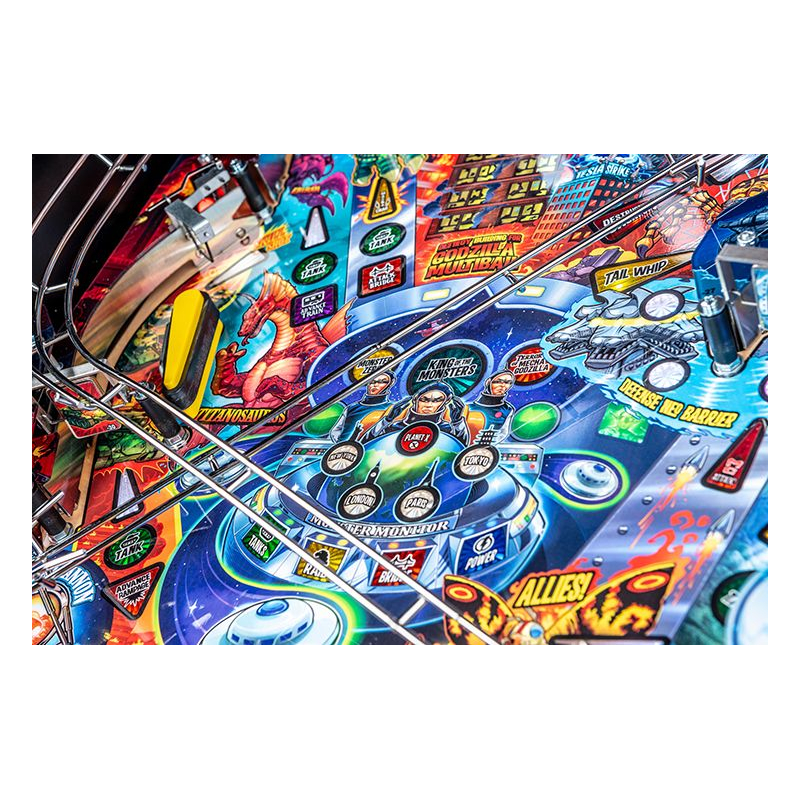 La version Pro du flipper Jaws propose un plateau fluide et accessible, idéal pour les joueurs souhaitant profiter d'un flipper Stern moderne avec un gameplay rapide et efficace. Les rampes métalliques, les boucles rapides et les cibles interactives permettent d'enchaîner les combos tout en progressant dans les missions inspirées du film. Chaque tir réussi rapproche les joueurs de la confrontation finale avec le requin, déclenchant des modes de jeu intenses et des séquences de multiball explosives qui font monter l'adrénaline.
